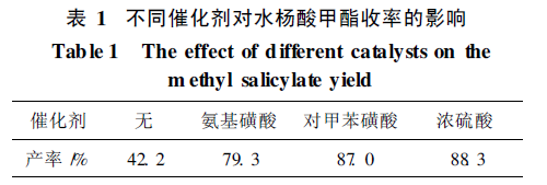 催化劑種類對(duì)水楊酸甲酯收率的影響