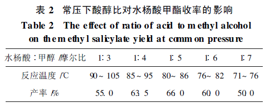 酸醇比對(duì)水楊酸甲酯收率的影響
