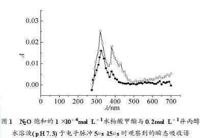 圖2(脈沖輻解N2O飽和的1×10-4mol·L-1水楊酸甲酯水溶液(pH7.3)在320nm處觀察到的PhMSO·的動(dòng)力學(xué)生成曲線)顯示在10μs時(shí)間內(nèi)PhMSO·吸收隨時(shí)間而上升,約在12μs基本趨于穩(wěn)定。由此動(dòng)力學(xué)生成曲線測(cè)得PhMSO·的表觀生成速率常數(shù)為4.25×105mol·L-1。 山東新華隆信化工有限公司生產(chǎn)水楊酸鈉,水楊酸甲酯等產(chǎn)品 相關(guān)新聞水楊酸甲酯:緩解肌肉疼痛的 “天然阿司匹林” |