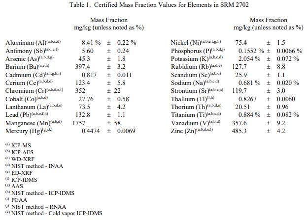 產(chǎn)品名稱:標準參考物質(zhì) NIST SRM 2702 - 海洋沉積物中的無機物
