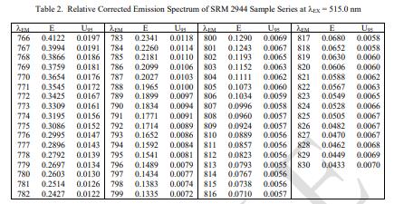 推薦從 λEM = 590 nm 到 805 nm 的范圍作為大多數(shù)儀器和應(yīng)用的最佳選擇。請(qǐng)注意,本標(biāo)準(zhǔn)的認(rèn)證值在用于脈沖光源熒光光譜儀的光譜校正時(shí)成為參考值。