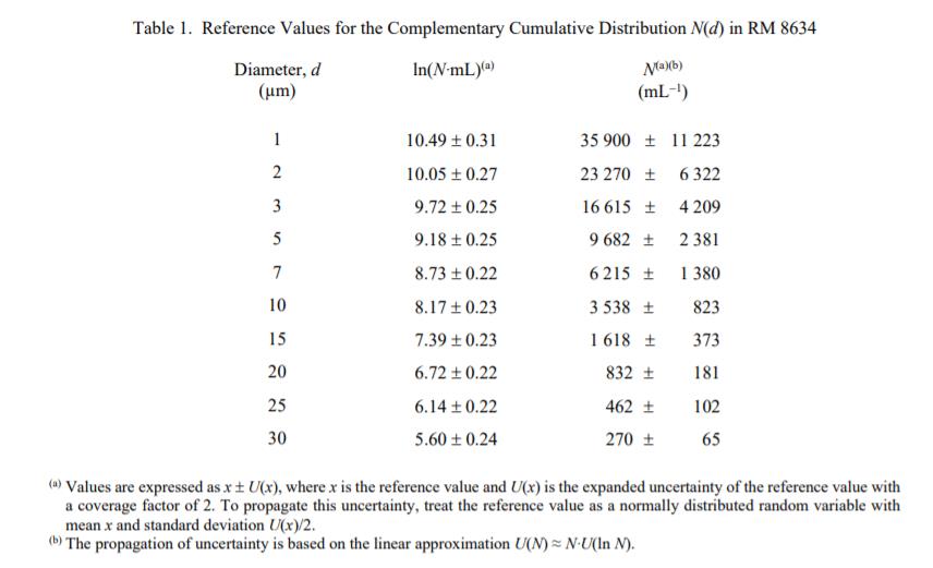 NIST 參考值是未經(jīng)認(rèn)證的值,它是基于可用數(shù)據(jù)對真實值的最佳估計;然而,該值不符合 NIST 的認(rèn)證標(biāo)準(zhǔn),并且提供了相關(guān)的不確定性,可能僅反映測量精度,可能不包括所有不確定性來源,或者可能反映多種分析方法之間缺乏足夠的統(tǒng)計一致性 [1,2 ]。表 1 和表 2 中提供了粒度分布和形態(tài)參考值。這些值在計量上可溯源至使用的測量方法和校準(zhǔn)程序
